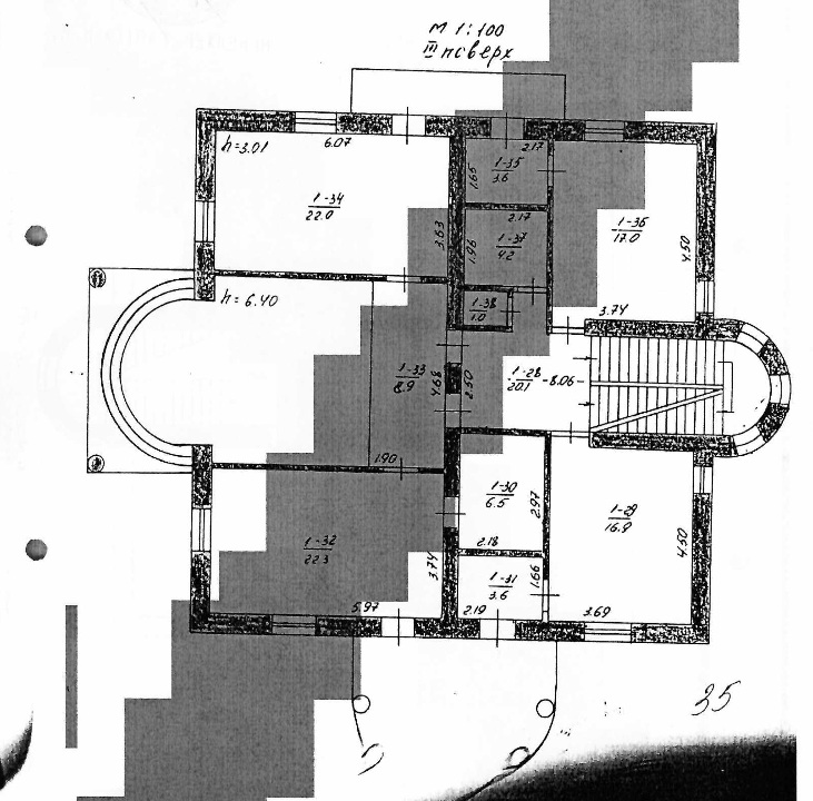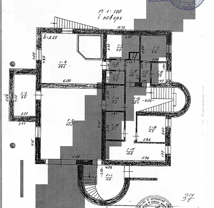 Будинок складається з трьох поверхів та мансарди.