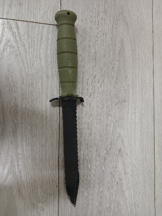 Конфісковане майно за вироком суду:ніж, руків`я якого зеленого кольору, а лезо - чорного кольору, б/в.