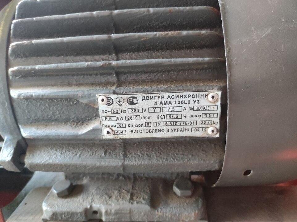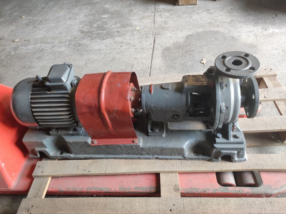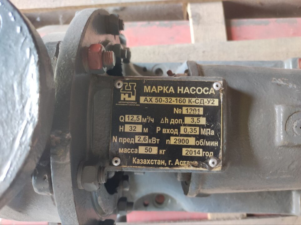 Насосний агрегат АХ 50*32*160К з полумуфтою та захисним кожухом, під'єднаним до нього двигуном 5,5 КВТ 3000 об/хв ЧАМА100L2УЗ на станині для насосів АХ ч/к, без ознак використання