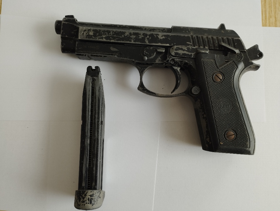 Конфіскація майна за рішенням суду: пістолет пневматичний калібр 4,5 mm., має численні затертості та відсутність фарби б/в, газовий балончик та патрони у пластиковій банці б/в. Згідно виконавчого листа №1-кп/541/37/2023 від 07.02.2023 року виданий Миргородським міськрайонним судом.