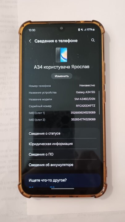 Конфісковане майно за рішенням суду: мобільний телефон Galaxy A34, imei1: 352689824599089, imei 2: 352854774529089, б/в
