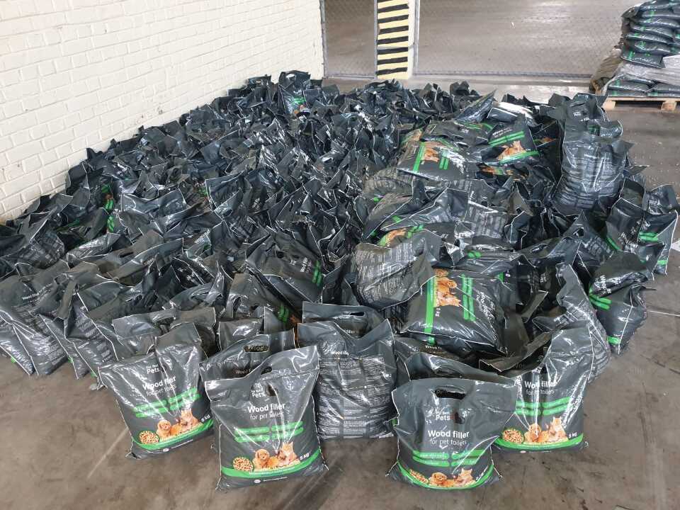 Гігієнічні пелети з рослинних волокон в кількості 1050 мішків, загальною вагою 5250 кг