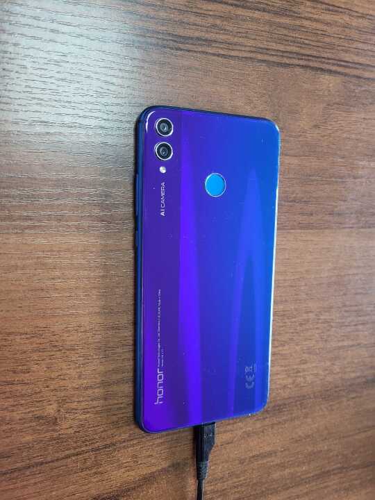 мобільний телефон «HONOR 8Х», ІМЕІ 1: 868758040961611, ІМЕІ 2: 868758040991626. Бувший у використанні. Корпус синього кольору. Відсутній зарядний пристрій. Зарядку тримає акумуляторна батарея. Телефон зовні в задовільному стані. Є потертості по бокам на верхній частині корпуса. Пароль відсутній, тому встановити технічні характеристик не представилося можливим.