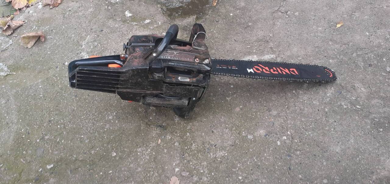 Конфіскація майна за вироком суду: бензопила марки «DNIPRO-M» модель DSG-62H з шиною 20" (50см), б/в