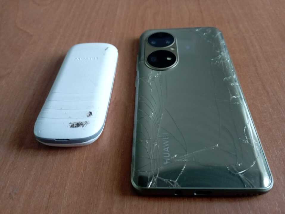 Мобільні телефони: марки "HUAWEI" imei: не встановлено, скло та корпус пошкоджені, наявні сколи та тріщини; марки "SAMSUNG" imei: не встановлено, білого кольору, скло пошкоджене, наявні потертості та подряпини. Б/В. Працездатність невідома, стан незадовільний. Конфіскація майна: за ухвалою Казанківського районного суду №478/1418/23 виданої Казанківським районним судом від 23.11.2023.