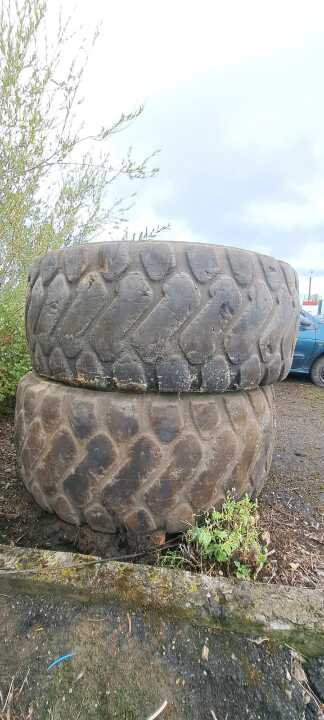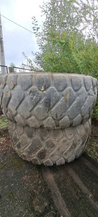 Дві пневматичні шини гумові б/в марки MICHELIN, розміром 26,5/R25 та два колеса б/в марки TRIANGLE, розміром 26,5/R25