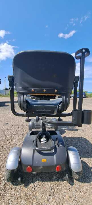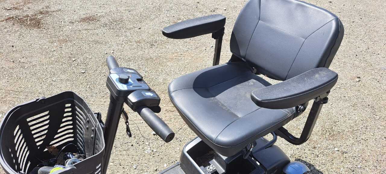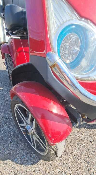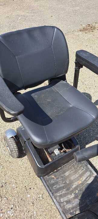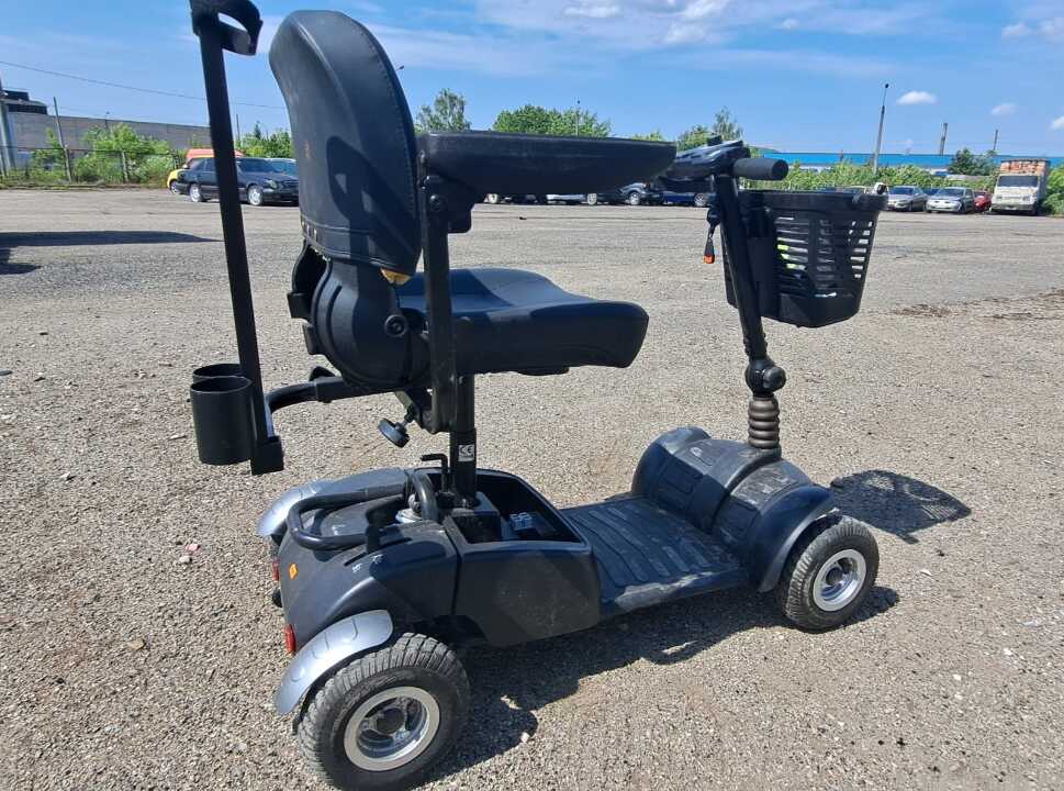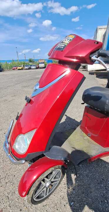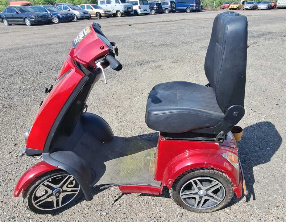 Крісло колісне (коляска) з електричним приводом з наявною окремою рульовою колонкою чотирьох колісний, в кількості: 3 шт., бувші у вжитку, колір: чорний, синій, червоний, ідентифікаційний номер не встановлено.