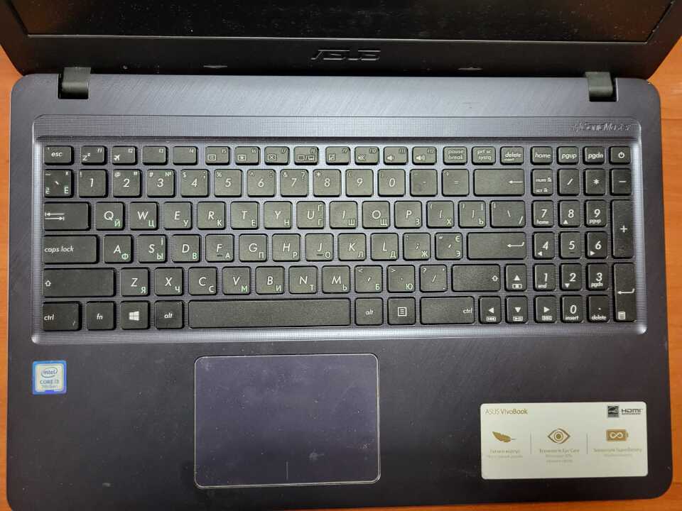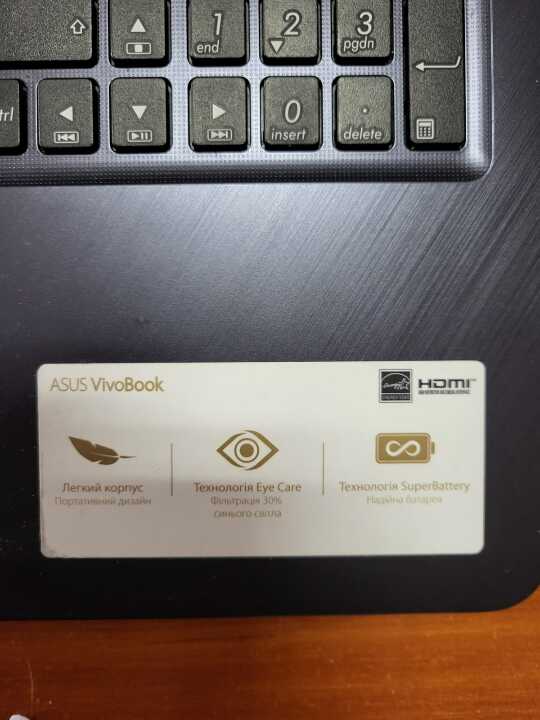 ноутбук марки «Asus» чорного кольору (s/n: К7N0GR124405304). Бувший у використанні, чорного кольору. Корпус подряпаний. Модель X543UA-DM1664. Зарядний пристрій відсутній, ту встановити чи працює і які його характеристики не представилося можливим.