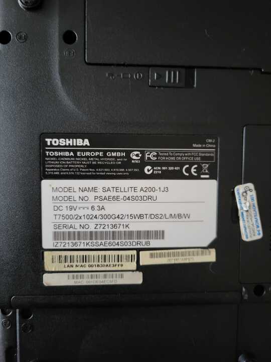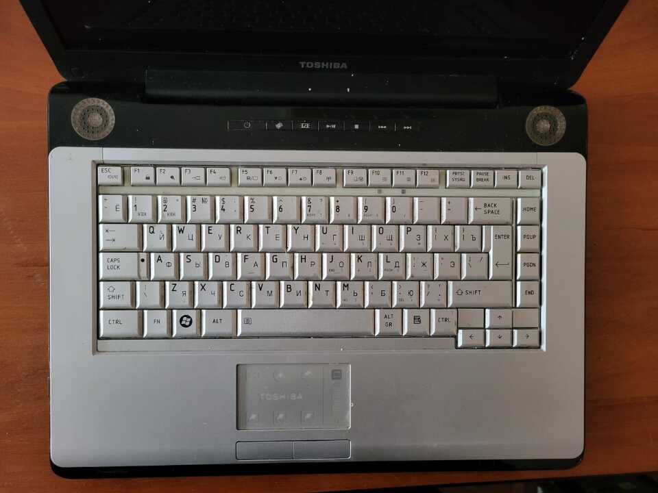 ноутбук марки «Toshiba» s/n, бувший у використанні. Чорного кольору. Кришка ноутбука та корпус подряпані. Пам'яті 148 Гб на диску. Зарядний пристрій в наявності. Моделі біля 15 років.