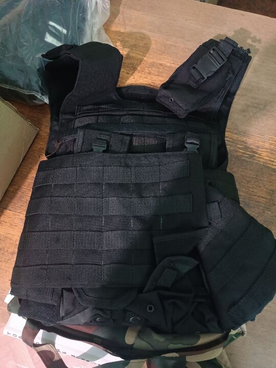 Комплект захисту, каска панорамна, бронежилет, маска з противогазом, захист колін та рук, кийки, кількість: 5 компл., б/в