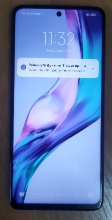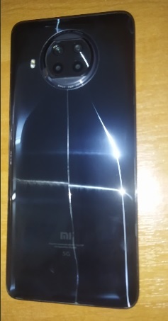 Мобільний телефон марки "Xiaomi", модель "Mi 10T Lite" був у використанні. Задня кришка з тріщиною, корпус з потертостями, на екрані захисне скло. Телефон в робочому стані, вмикається, не заблокований. Зарядний пристій відсутній.