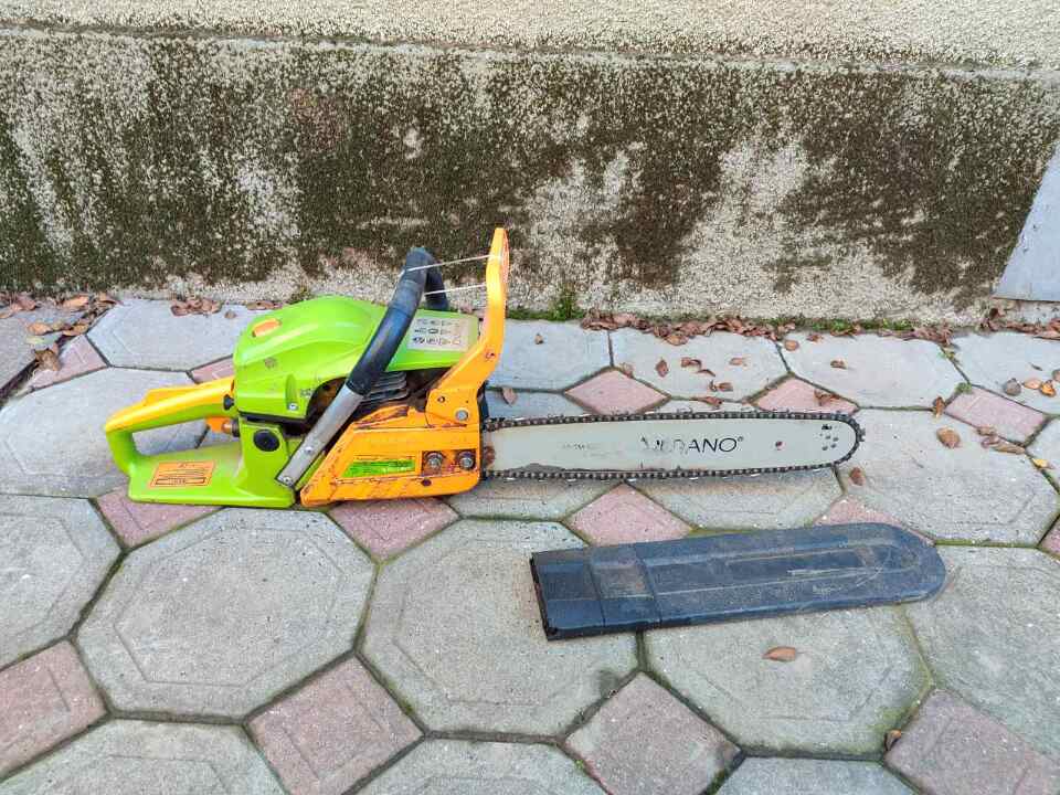 Конфісковане майно за рішенням суду: бензопила марки "VERANO" модель VRS22G бувша в експлуатації, корпус зелено-оранжевого кольору