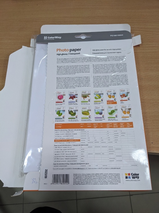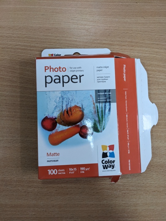 Матовий фотопапір для струменевого друку розміром 10 х 15 см; 190 г/м2, виробника ColorWay, 68 одиниць.