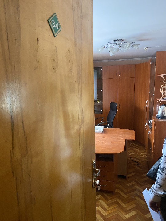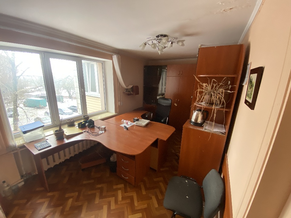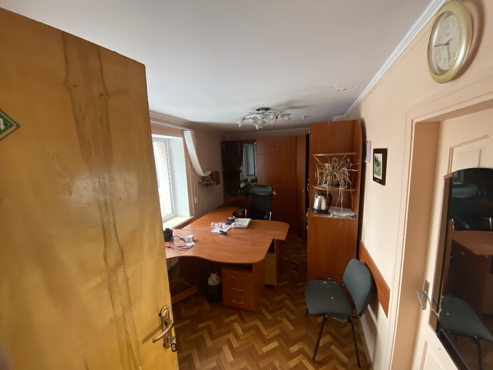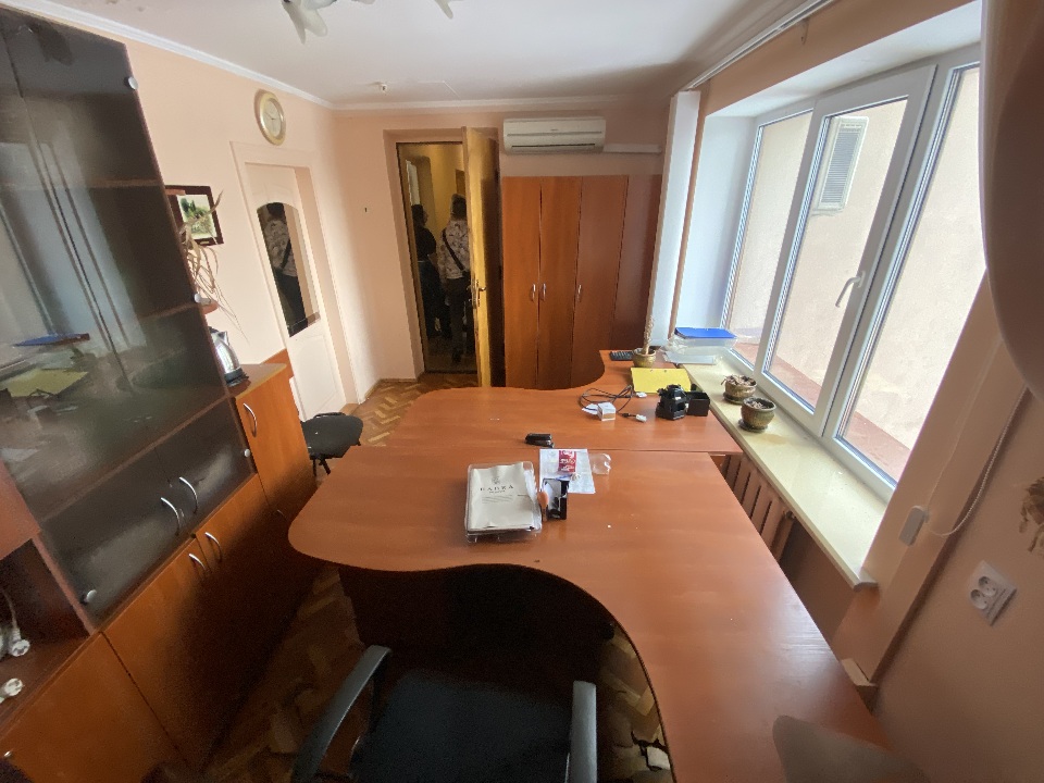 Комплект офісних меблів: стіл офісний 2 од. б/в, стінка офісна з полицями та скляними дверцятами на 5 секцій б/в, шафа тридверна б/в. Меблі в задовільному стані, використовуються в офісному кабінеті для зберігання документів