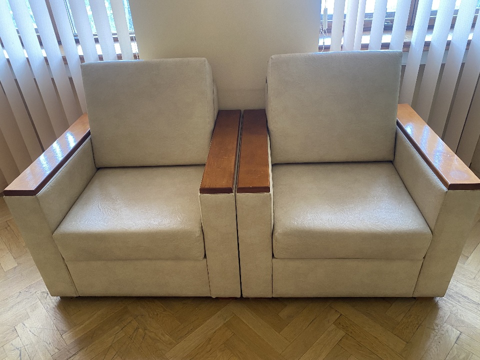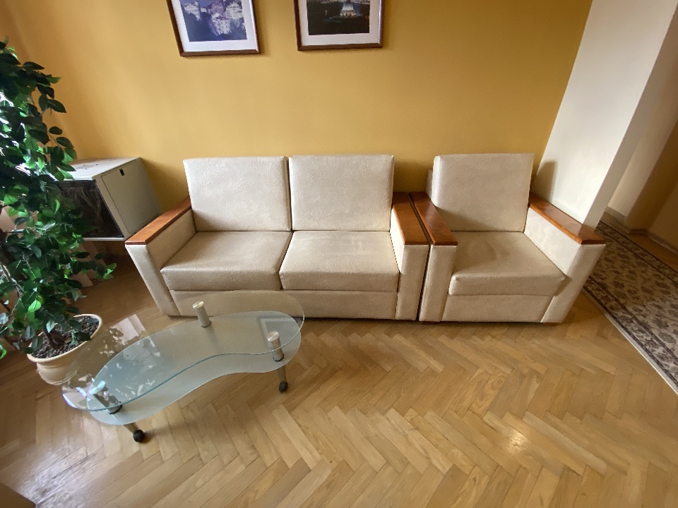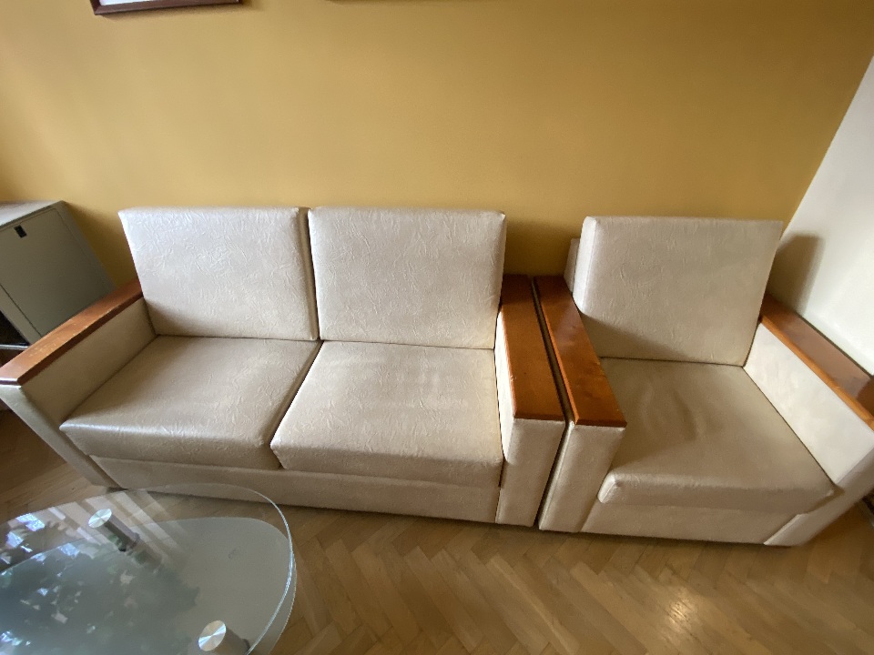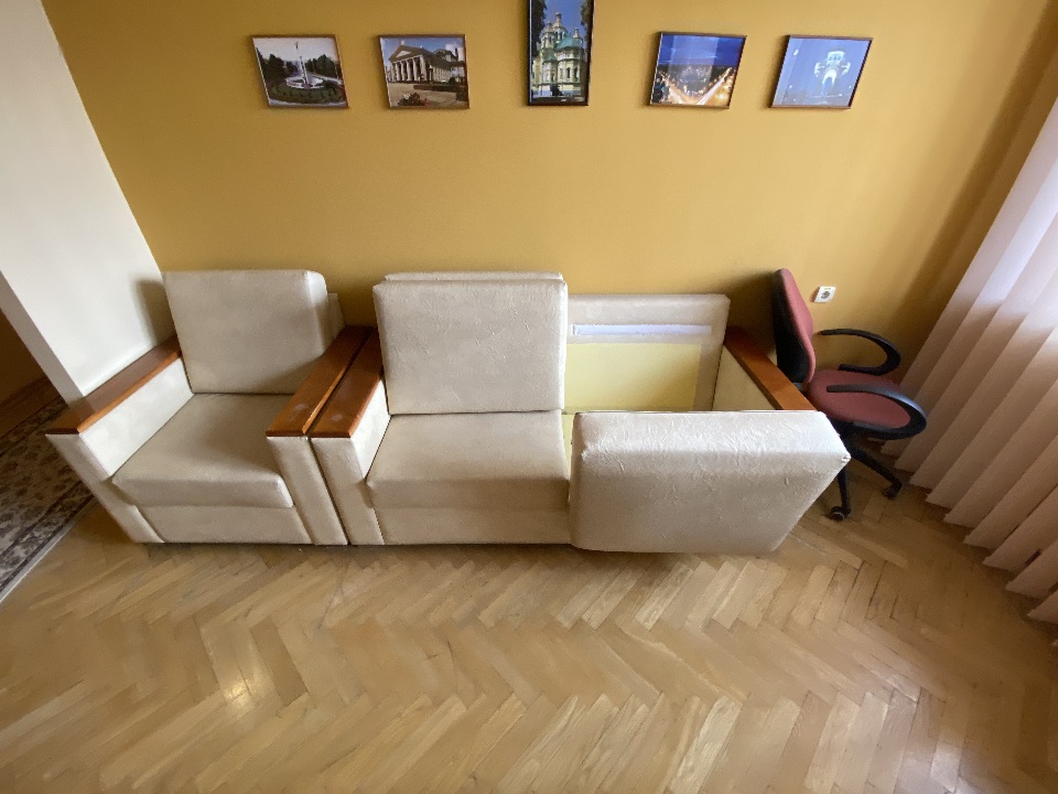 Комплект м’яких меблів б/в, бежевого кольору: 2 дивана, 4 крісла