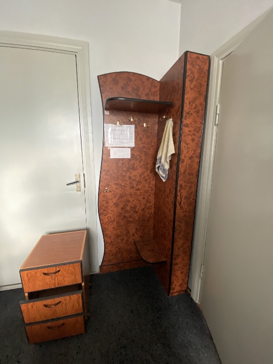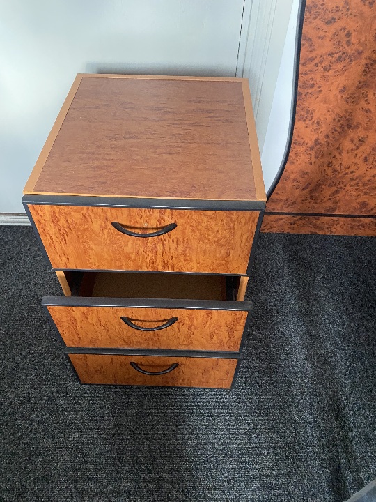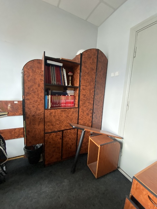 Комплект меблів офісний б/в: стіл, тумба з полицями, шафа з полицями, вішак для одягу