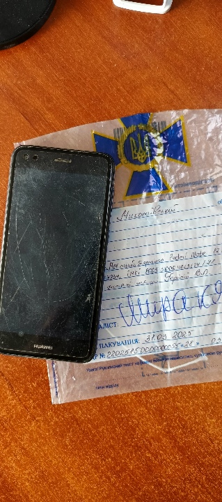 Майно конфісковане за рішенням суду: смартфон марки «HUAWEI», назва пристрою «SLA-L22», б/в